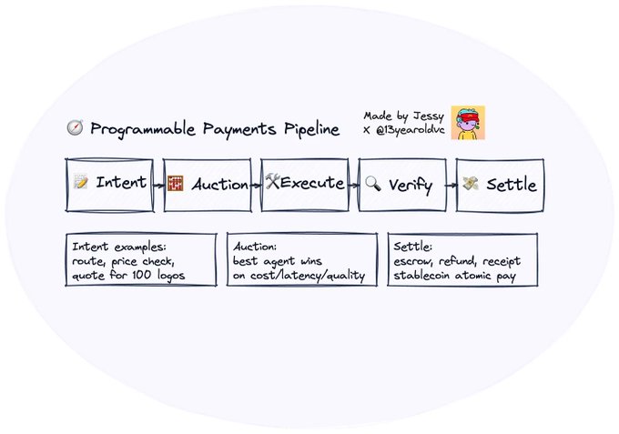단기적인 기회는 '반자율적 중간 지점', 즉 스테이블코인 채널을 통해 API 수준의 사용당 지불 결제를 촉발하는 인간 주도 행동에 있습니다. 이러한 프로세스는 에이전트의 지능적인 행동은 아니지만, 지연 시간이 짧은 프로그래머블 지갑, 통화당 계량, 즉각적인 결제와 같은 인프라를 이미 사용하고 있으며, 이는 진정한 '에이전트 ↔ 에이전트' 상거래의 미래가 달려 있는 핵심 구성 요소입니다.