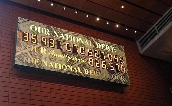 미국 국가 부채 시계는 미국 국가 부채와 그 비중이 미국 가계에서 차지하는 비율을 실시간으로 추적합니다. 미국의 재정적 부담이 커지고 있음을 극명하게 보여주는 지표입니다. (게티이미지 출처: Selcuk Acar/Anadolu 사진)