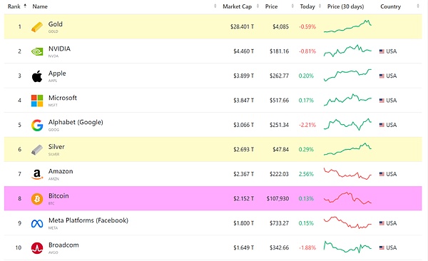 Yes, I'm talking about physical gold. With the rise of geopolitical risks and global macroeconomic uncertainty, the total market capitalization of gold has (at one point) surpassed $30 trillion, firmly securing its position as the world's leading asset.