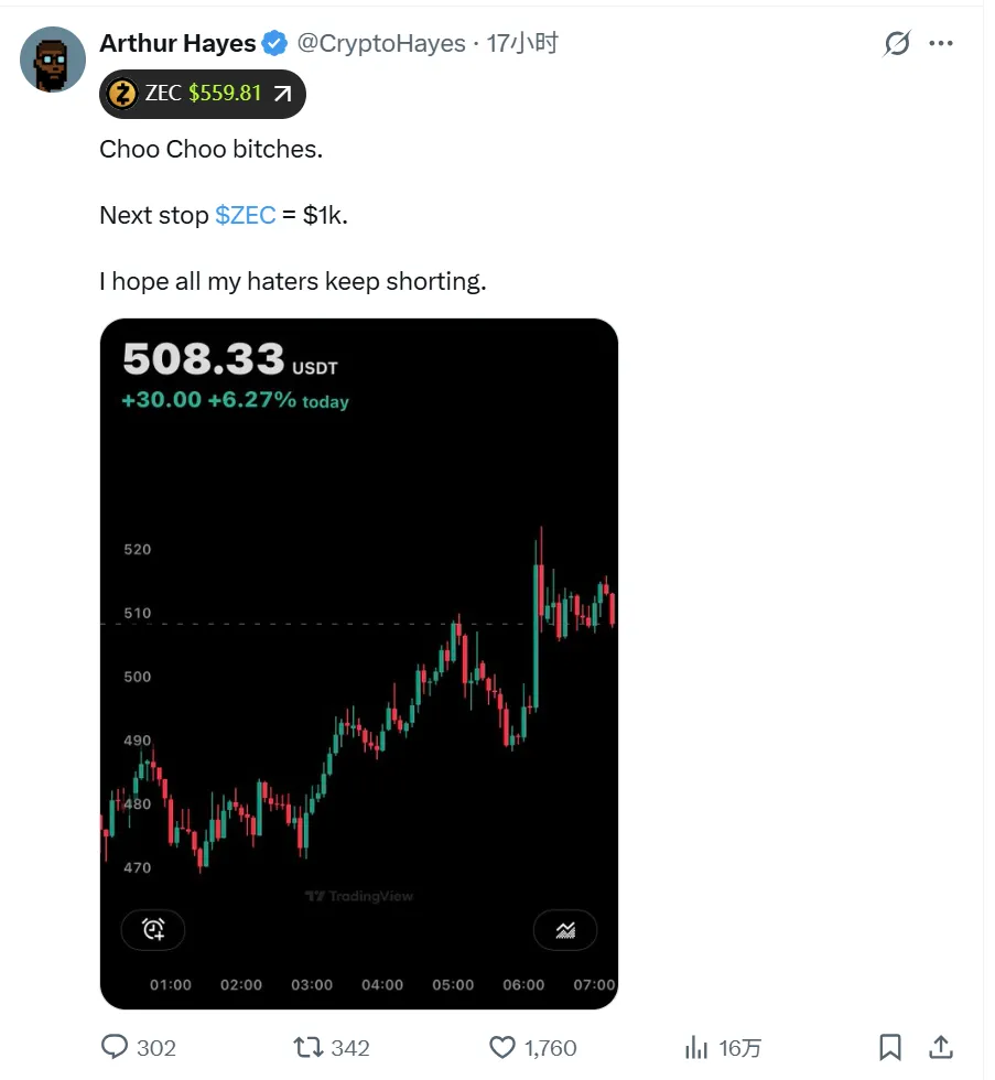 Silicon Valley investor Naval endorsed ZEC (at $68 at the time) on October 1st, stating that "Zcash is insurance against Bitcoin," and the price rose to $150 within a week. BitMEX founder Hayes has recently been frequently endorsing ZEC, igniting FOMO sentiment among retail investors. Crypto KOL Ansem placed ZEC on par with BTC. The dense endorsements from top KOLs created a "FOMO" market atmosphere, but also sowed the seeds of "endorsement-driven selling."
