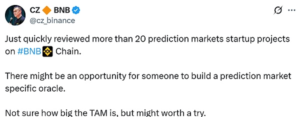 这项卡脖子的技术决定了一个链上预测市场能否持续独立运转、承载大体量市场。这也是为什么 BSC 想做预测市场项目需要先解决预言机问题。
