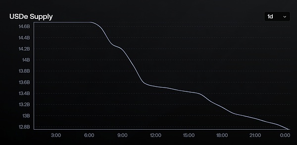 从抵押品结构来看,BTC 头寸减少约 6.5 亿美元、ETH 减少约 1.3 亿美元、稳定币类资产下降约 4 亿美元。综合判断,本次USDe发行下降主要源于多头爆仓及衍生品市场的资金容量收缩,而非单一交易所层面的稳定性攻击或挤兑行为。