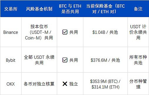 系统性风险可控:三大主要交易所(Binance、Bybit、OKX)合计持有约20 亿美元风险基金,在相似市场条件下理论可承载约2,000 亿美元级清算冲击,显著降低 ADL(自动减仓)触发风险。