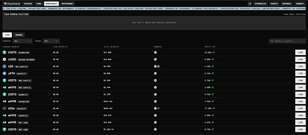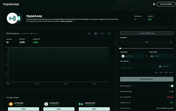 < span text="">인터랙션: 사용자는 이자, 대출 및 하이퍼루프 원클릭 레버리지를 위한 예금을 지원하는 hyperlend.finance를 통해 월렛에 연결합니다. 인터페이스는 간단하고 직관적으로 설계되어 실시간 이자율 정보와 위험 지표를 제공하여 사용자가 정보에 입각한 대출 및 대출 결정을 내릴 수 있도록 지원합니다.
