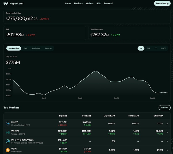 하이퍼렌드는 자산 구성과 운영 효율성 데이터 측면에서 건강하고 안정적인 성장세를 보이고 있습니다. 건강하고 안정적인 성장과 우수한 시장 적합성을 보여줍니다. 총 5억 2,400만 달러의 TVL은 주로 와스트하이프(2억 5,400만 달러, 48%)와 네이티브하이프(2억 6,000만 달러, 39%)로 구성되어 있으며, 이는 생태계 내에서 LST의 중요성과 유동성에 대한 강한 수요를 명확하게 반영하는 자산 분포입니다. 현재 총 차입 규모는 2억 6,700만 달러로 전체 활용률은 48%이며, 이는 디파이 대출 계약의 건전한 운영 범위 내에 속하는 수준으로 인출 수요를 충족할 수 있는 충분한 유동성을 확보하는 동시에 자본 활용을 최적화하여 합리적인 수익률을 달성하고 있습니다.