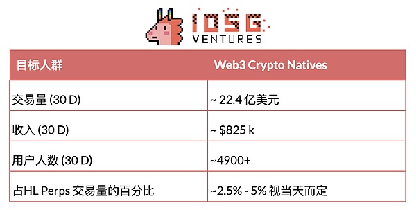Nhìn chung, doanh thu kết hợp trung bình hàng ngày của tất cả các giao dịch di động có liên quan (bao gồm một số ứng dụng không được đề cập) là khoảng 50.000 đô la Mỹ, tương đương với khoảng 1,5 tỷ đô la. Các ứng dụng chiếm khoảng 3%-6% tổng khối lượng giao dịch hợp đồng vĩnh viễn của Hyperliquid. Để tham khảo, kho lưu trữ HLP của Hyperliquid chiếm khoảng 5%.